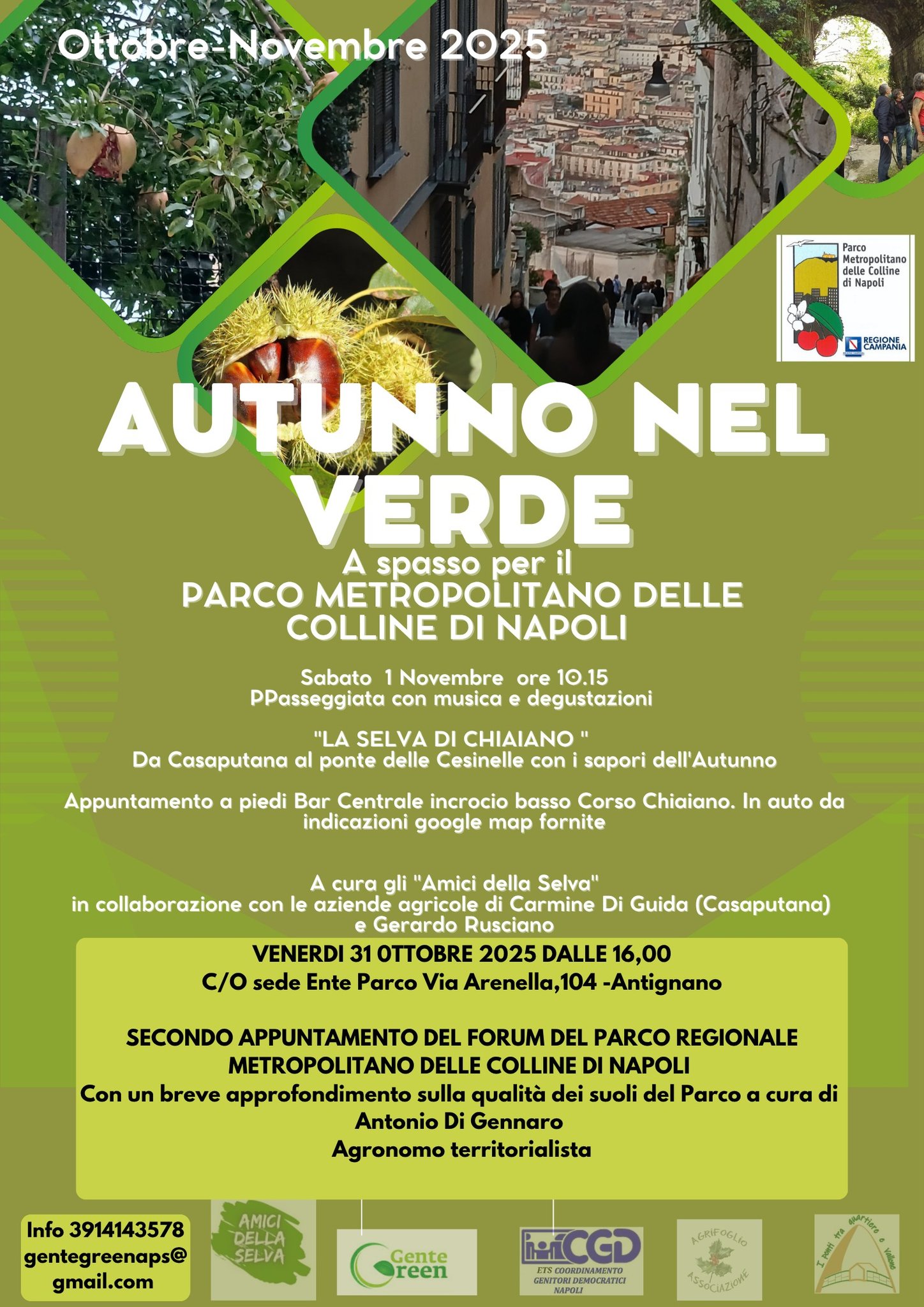 Gente Green Aps organizza una passeggiata con musica e degustazioni, “La selva di Chiaiano” – da Casapunta al ponte delle Cesinelle con i sapori dell’Autunno.