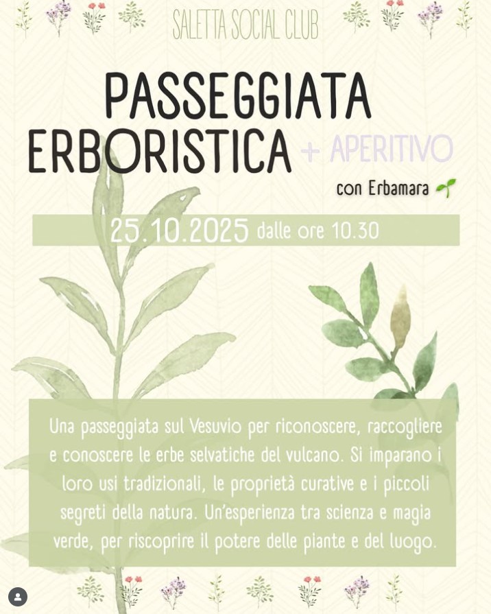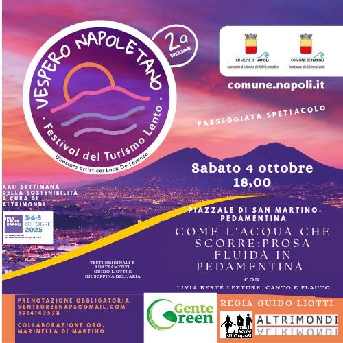 | 1 evento, ![]() Orari: Dalle 15:00 La Coldiretti Napoli organizza il convegno "Coltivare Legalità - La Terra che R-ESISTE”, per un momento di... | 2 eventi, ![]() Orari: Dalle 18:30 SuperOtium presenta il libro di Cosimo Terlizzi "Dal giardino – riconciliarsi con il selvatico" e il ciclo... ![]() Orari: Dalle 9:00 alle 12:30 Il Collettivo Viviani organizza un hackathon (evento al quale partecipano, a vario titolo, esperti di... | 0 eventi, | 0 eventi, | 3 eventi, ![]() Orari: Dalle 18:30 alle 21:30 Venerdi 24 ottobre a partire dalle 18.30, la Bicycle House in Galleria Principe, a Napoli... ![]() Orari: Dalle 17:30 La pace a Gaza, che ha visto Trump protagonista con al seguito tutti i leader politici lacché... ![]() Orari: Dalle 8:30 alle 18:00 La Società Italiana di Arboricoltura (SIA) Onlus organizza il convegno “Verde e città. La qualità... | 7 eventi, ![]() Orari: Dalle 10:00 Salandra Lovers organizza un’esperienza speciale di connessione profonda con se stessi, con gli altri e con la... ![]() Orari: Dalle 10:30 "Saletta Social Club" organizza una passeggiata tra i sentieri antichi del Vesuvio, dove la terra fuma e... ![]() Orari: Dalle 16:30 alle 19:30 Un trekking urbano dal sapore naturalmente selvaggio, tra vigneti, antiche masserie e scorci mozzafiato sulla città di... ![]() Orari: Dalle 9:00 alle 15:00 L’antico Complesso Monumentale di Santa Maria della Vita, nel cuore del Rione Sanità, apre le... ![]() Orari: Dalle 9:15 Napoli Obliqua organizza un percorso di trekking urbano, alla scoperta della Posillipo più nascosta e autentica. Un'esperienza... ![]() Orari: Dalle 10:30 alle 12:00 Kora Aps organizza "PacciAMIAMO", un laboratorio ludico-didattico-esperienziale sulla pacciamatura. Il laboratorio è rivolto ai bambini... ![]() Orari: Vari L'Assessorato al Turismo e alle Attività Produttive del Comune di Napoli sostiene l'iniziativa "Secondigliano tra corti e cortili",... | 3 eventi, ![]() Orari: Dalle 9:00 Domenica 26 ottobre l’isola di Capri si prepara ad accogliere la 9ª edizione della Camminata Nazionale tra gli... ![]() Orari: Dalle 10:00 Nell’ambito del Progetto Napoli Rurale, Locus Iste e Metadventures ti guideranno da San Martino al Monte Echia... |